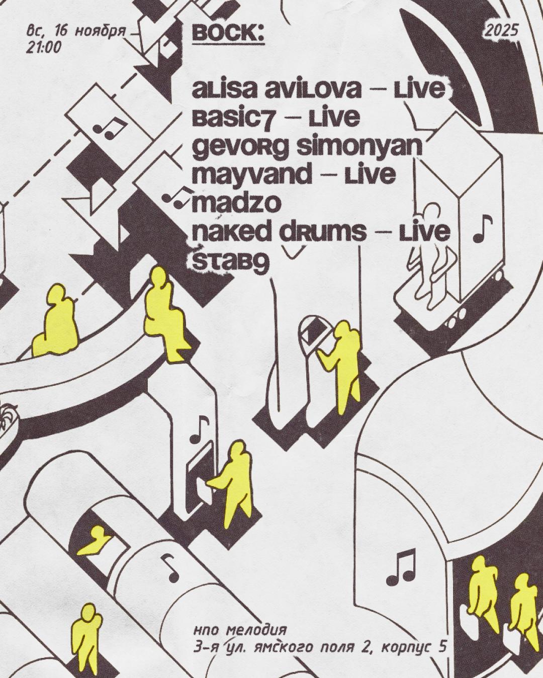 Откроет лайв от Alisa Avilova – текстурно, филдово, что называется экспериментально, но мы то с вами знаем – это deconstructed club. Подхватывает Mayvand с эмбиентом и чем-то таким, загадочно-волшебным.