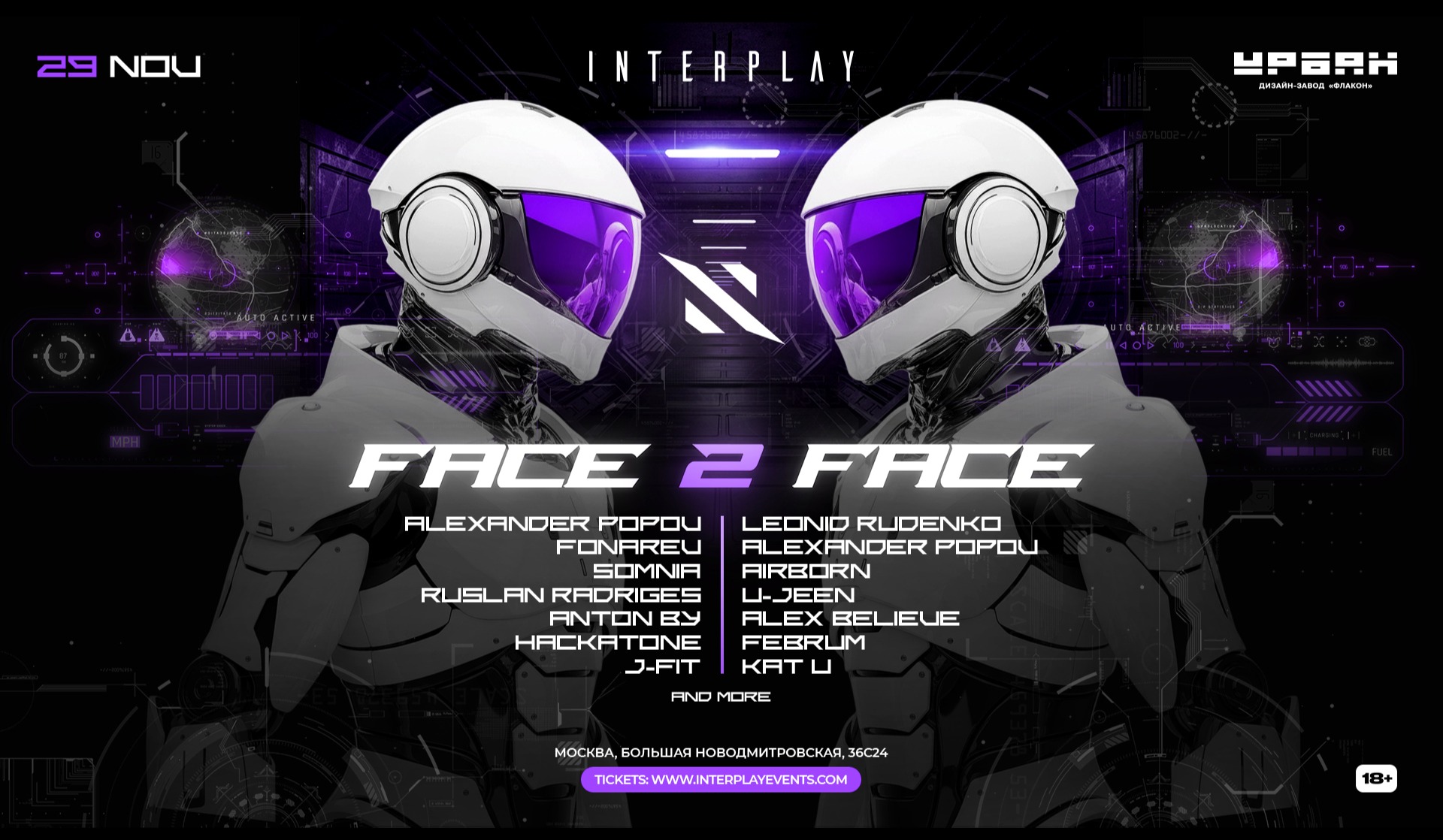 Face2face — особый формат диджейских сетов, где два артиста выступают друг напротив друга, трек за треком создавая живой музыкальный диалог.
