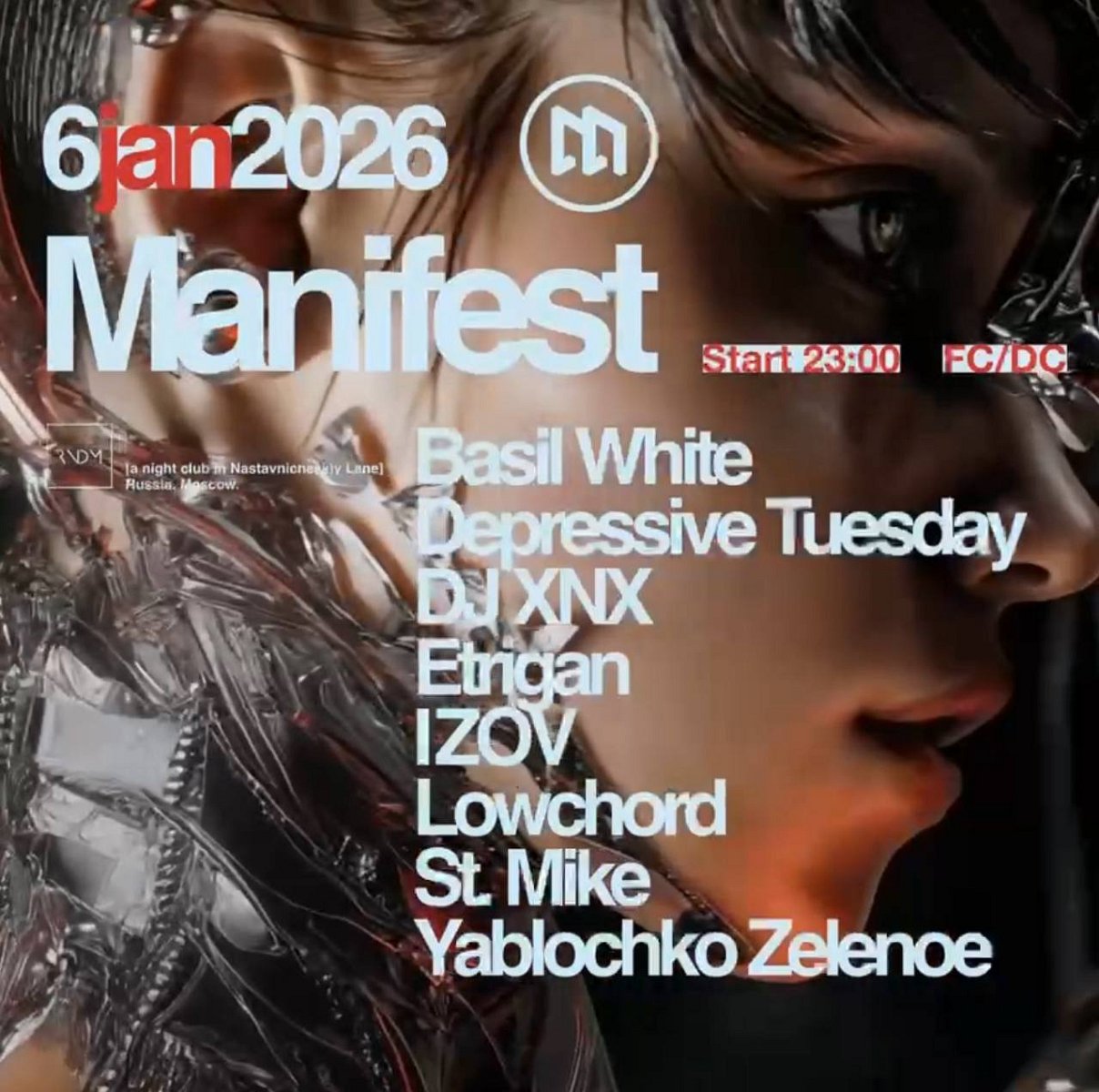 Новогодние праздники уже не за горами. Шестого января Manifest топит печку внутри родного RNDM, пока за стеклянными дверьми ходят морозы. Греться будем под Yablochko Zelenoe, St. Mike, DJ XNX, IZOV, Depressive Tuesday и резидентов команды.