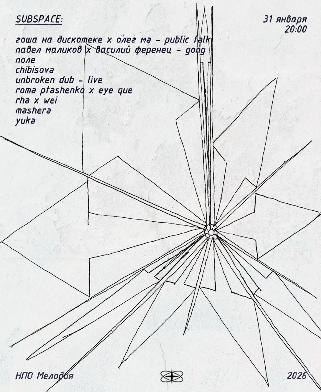Ивент в двух частях: вечер + ночь. Начнём с паблик-тока на тему «пост-рейв» — Гоша На Дискотеке и Олег Ма обсудят, куда движется и какие новые формы принимает витиеватая культура современного рейва. Следом — гонг-медитация от Павла Маликова и Василия Ференец.