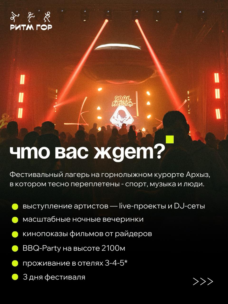 Фестиваль Ритм Гор пропитан уникальной атмосферой, которую можно прочувствовать не только во время спуска с горы — она витает по всему курорту Архыз и каждый находит для себя то, что ему будет по душе: