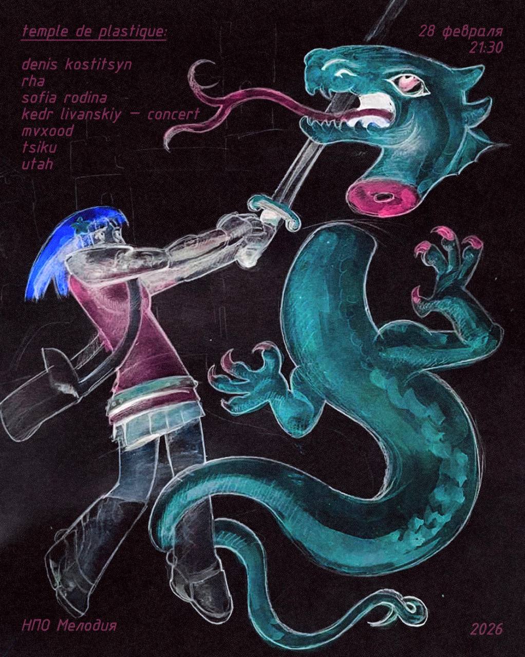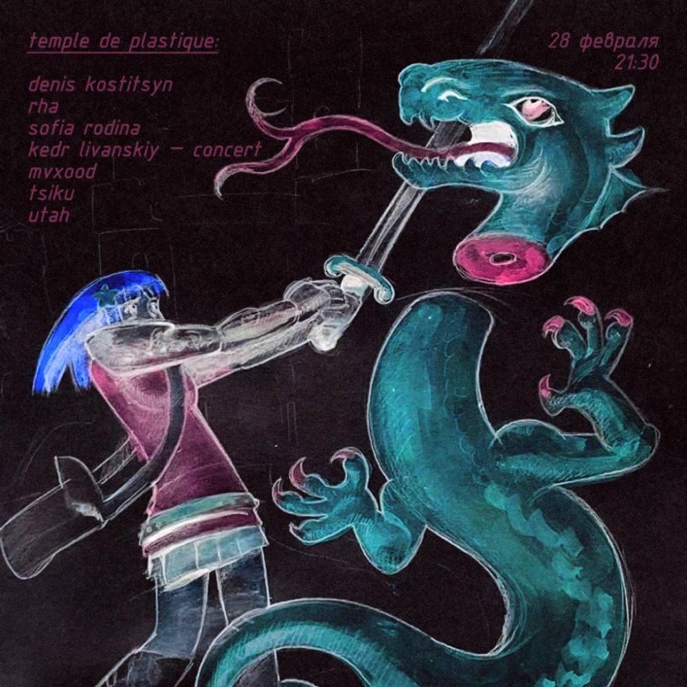 Откроет со-кураторка (диджетесса, диджейка — это стол, помните, да) клуба — Яна RHa. Лайв Kedr Livanskiy заявлен на одиннадцать (новое + то самое). Около полуночи — Sofia Rodina. В прайм — Mvxood и Utah. Утренние Tsiku и Denis Kostitsyn.