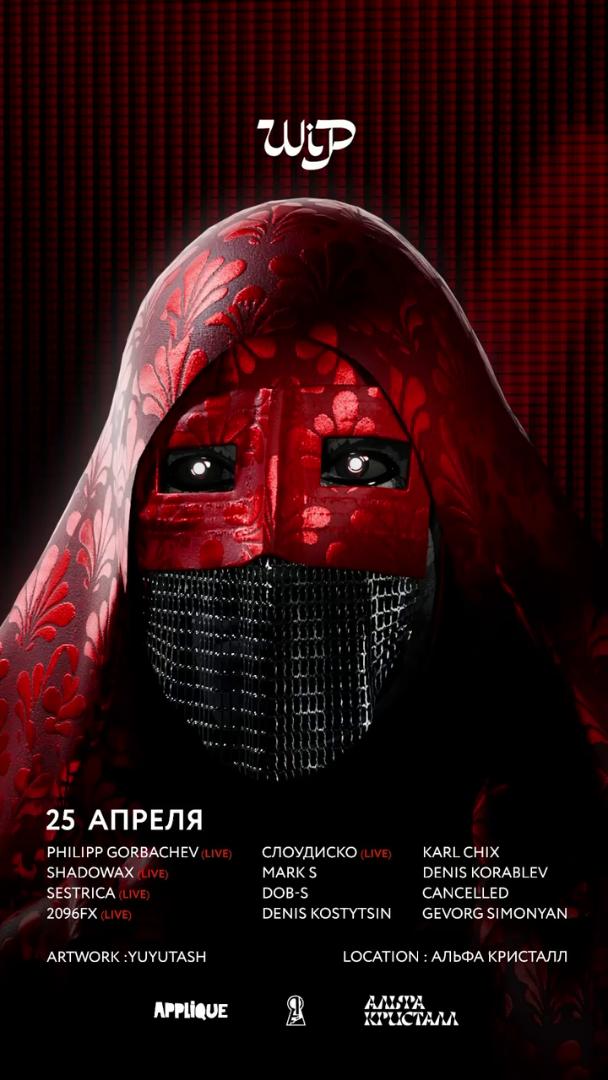 В современном городе — с чайными садами и золотыми закатами — творческое объединение Applique совместно с формацией WIP организуют секретный рейв через анонимайзер, куда просят взять с собой платок на всякий случай.