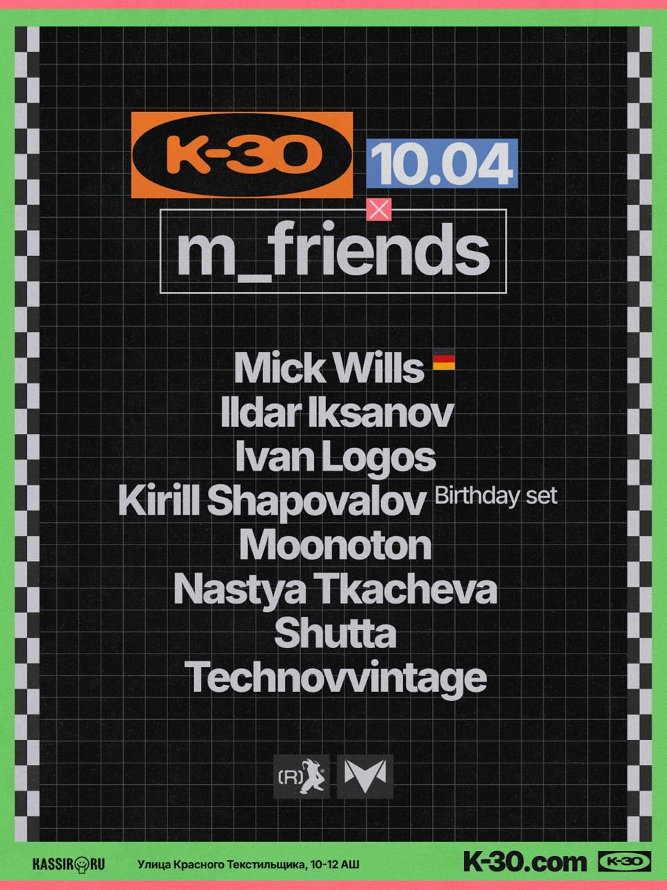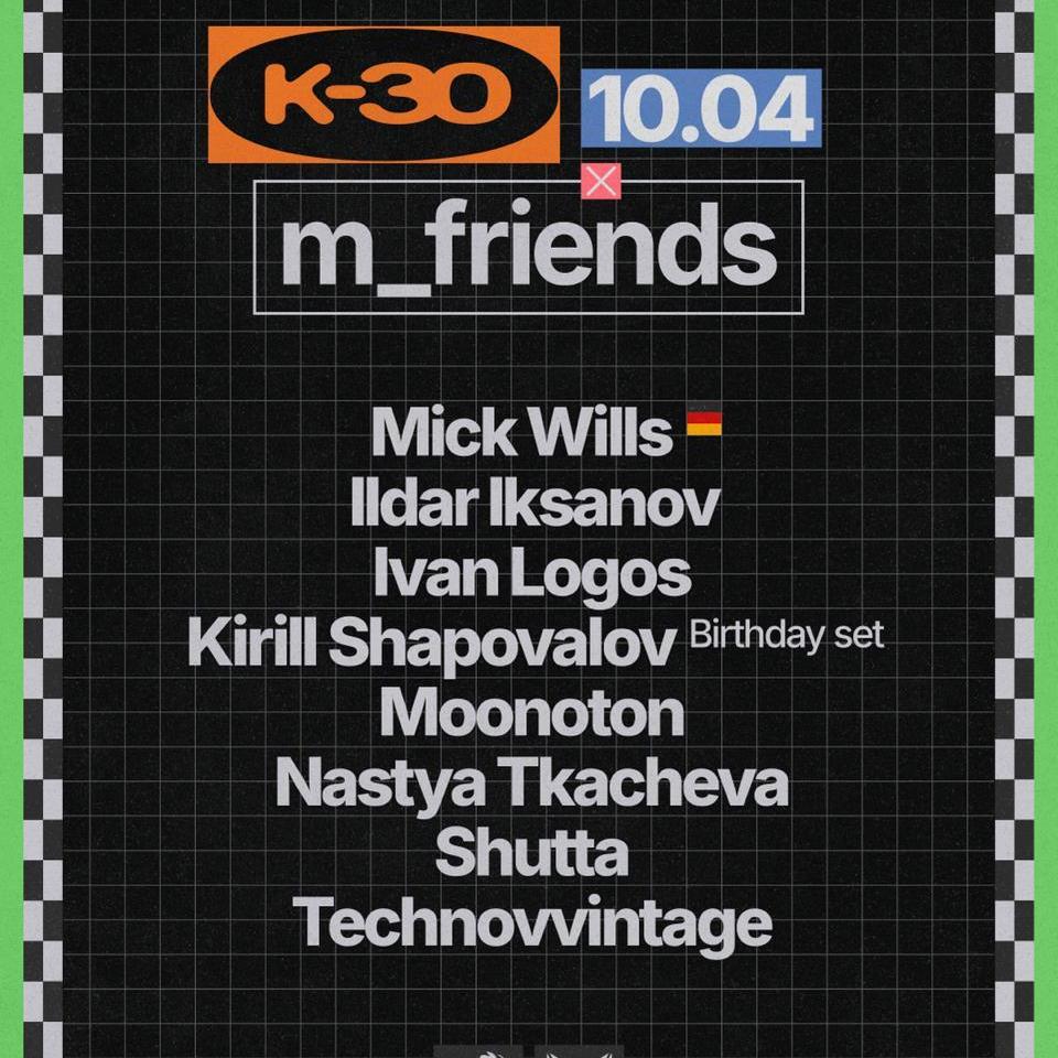 В Петербург приезжает Mick Wills — немецкий продюсер с безупречной репутацией среди знатоков, чьи релизы на протяжении десятилетий формируют звучание EBM, electro и dark disco сцены. Также в эту ночь отмечаем день рождения Кирилла Шаповалова — редкая возможность застать его дома между европейскими гастролями.