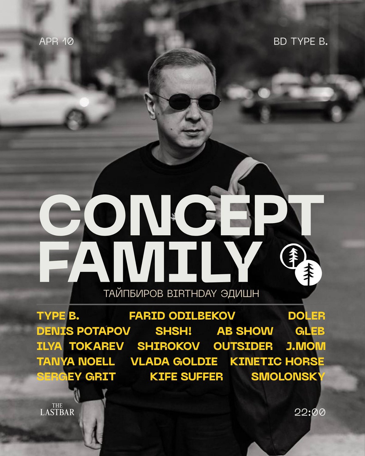 10 апреля устраиваем вечеринку в The Last Bar, приуроченную ко дню рождения сооснователя Concept Family - Артема (Type B.)