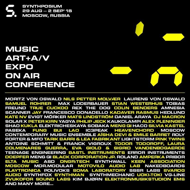 Synthposium 5 — пятый, разросшийся до пяти дней международный фестиваль изобретательной музыки и музыкальных изобретений. Synthposium 5 пройдет в Москве с 29 августа по 2 сентября. Как обычно, в программе — выставка музыкального железа и софта, образовательная сессия с воркшопами, лекциями и дискуссиями, медиаискусство, вечерние и ночные концерты музыкантов со всего света.