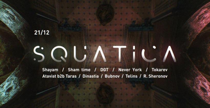 SQUATica - Финальный Аккорд Эпохи "3/4" от команды Squat. За пару лет существования Сквот собрал немало единомышленников среди гостей, организаторов, артистов. Порой, больше, чем удавалось вместить. Среди спецакций промелькнули Sven Väth, Guy Gerber, Apollonia, съёмки клипов Басты и Глюкозы. ЮНЕСКО определённо гордится происходящим в течение этих лет в стенах памятника «банной» культуры.