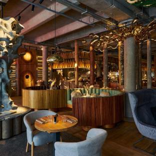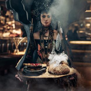 GRAND CAFE «ЧУДО-ЮДО» – СОВМЕСТНЫЙ ПРОЕКТ ИЗВЕСТНЫХ МОСКОВСКИХ РЕСТОРАТОРОВ ТИМУРА ЛАНСКОГО (ЧАЙХОНА N1, RUSALKA BISTROT) И АЛЕКСАНДРА ОГАНЕЗОВА (REMY KITCHEN & BAKERY, CUT FISH, PINO, MUSE, AMY). Вкусы тысячелетних рецептов, переосмысленные здесь и сейчас. Специи, пропитанные историей древних караванных путей, встречаются с локальными продуктами. Открытый огонь печи трансформирует простые ингредиенты в гастрономические открытия. «Чудо-Юдо» — портал на Арбате, где метафизика переплетается с урбанизмом, а тайны древней кухни обретают новую жизнь в современном прочтении. Ресторан растворяет границы между мирами и эпохами. В пространстве смело соединяются натуральное и футуристическое: массивные деревянные конструкции из цельных деревьев переплетаются с неоновыми инсталляциями. Берёзы, пронзающие временной континуум, и техногенные порталы-окна в другие измерения гастрономии и культуры создают гремучий микс язычества и киберпанка — ультрасовременную сказку в стиле neo-folk под шаманские ритмы downtempo.